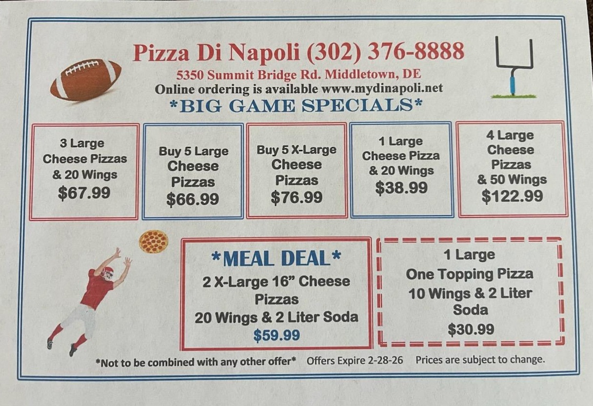 Pizza Di Napoli has established a reputation for providing the highest quality food, excellent customer service, and speedy delivery to customers in the Middletown area, always at the lowest possible price too. We can promise satisfaction because all dishes at Di Napoli are freshly prepared every day with premium ingredients.